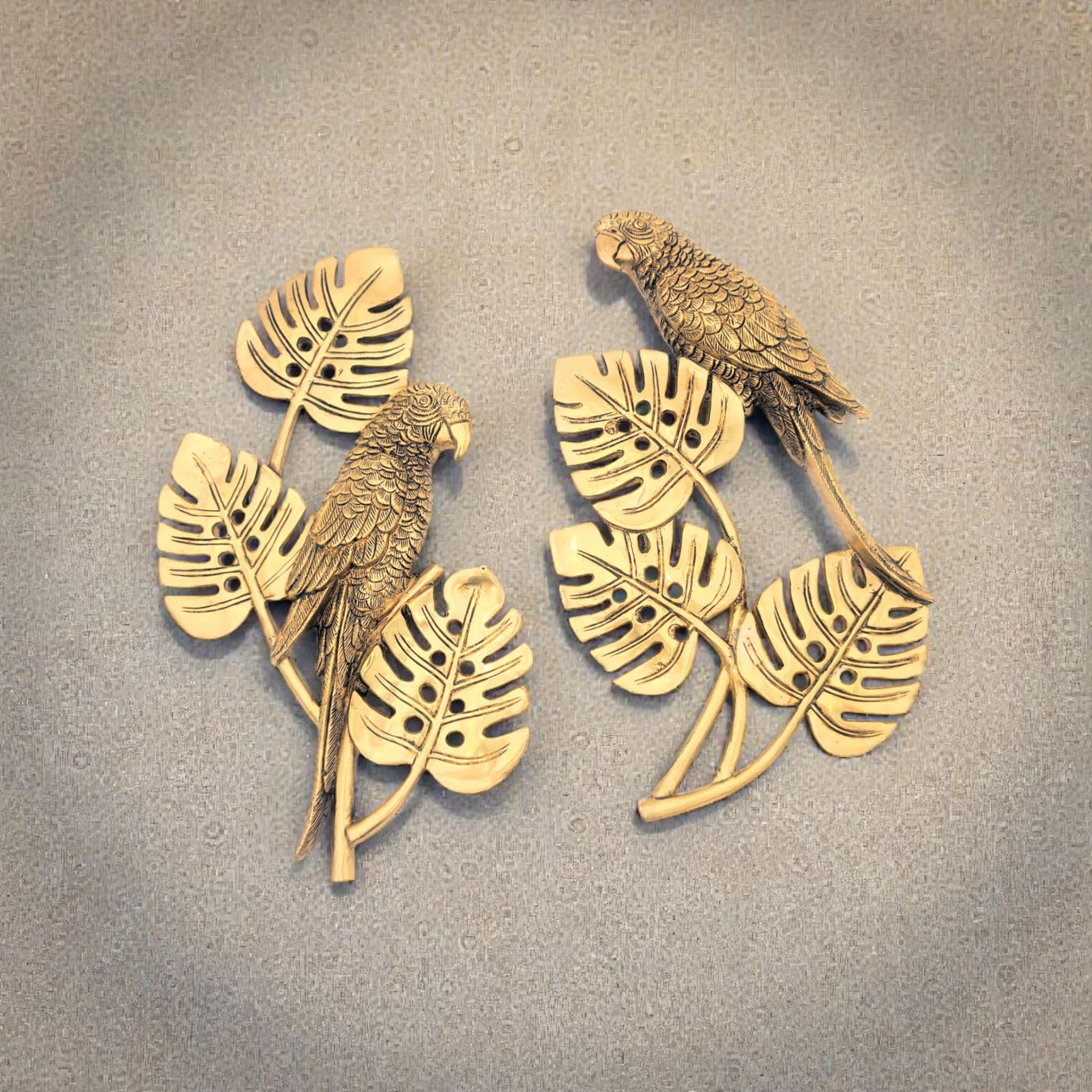Brass Parrot Wall Hanging – Tropical Leaf Design | Pure Brass Home Décor | Handcrafted Wall Décor