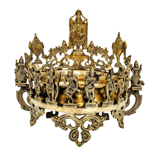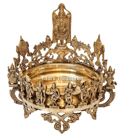 16" Beautiful Brass Urli of Lord Balaji and His Dasavatara Figurines