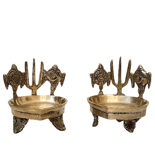 5" Shankh Chakra Namam Brass Diya - set of 2