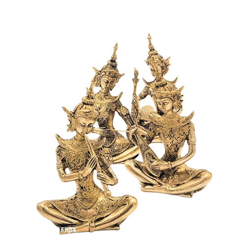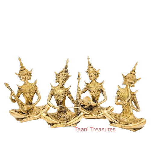 8" Brass Idols of Thai Musicians - Set of 4 figurines